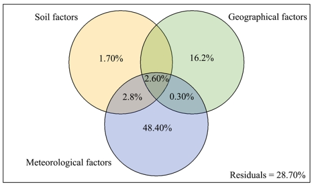 2 影响叶片大小性状重要环境因子的方差分解图